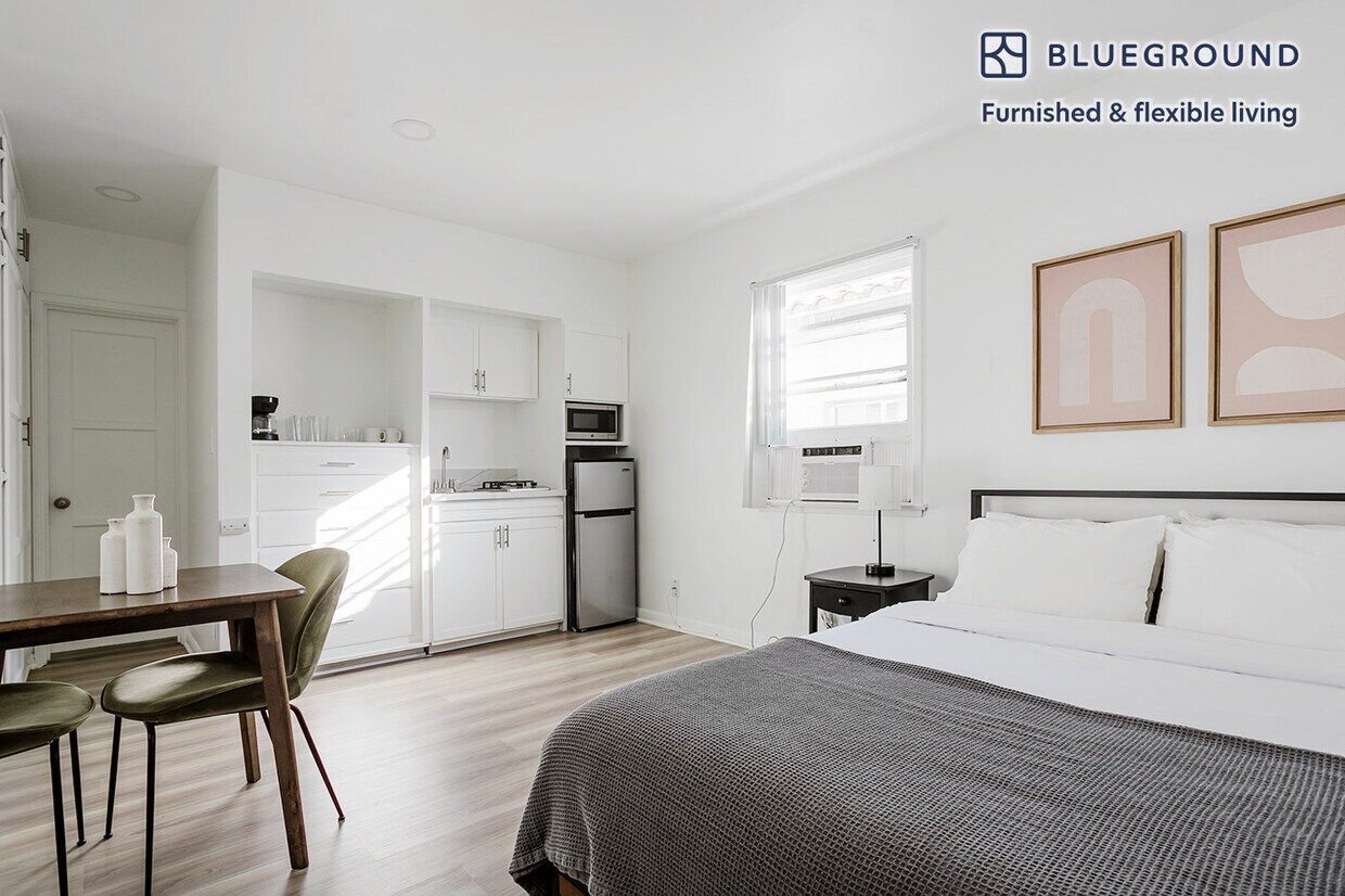 Show up and start living from day one in Los Angeles with this beautiful studio Blueground apartment. You’ll love coming home to this thoughtfully furnished, beautifully designed, and fully equipped Westwood Village home. (ID #LAX1278) The advertised rate of $2,440/month is the lowest available price, based on a 6 month(s) and 4 day(s) stay with a move-in date of March 21, 2026. If you’re looking for a 1-year stay, the rate is $2,490/month. Rates vary depending on the duration of stay, season, and other parameters. For exact pricing and additional pricing components, please visit our website and enter your desired move-in and move-out dates. The rate is applicable when billed upfront; it can be higher if billed in multiple payments. Brokers are welcome to reach out. Were you looking for an unfurnished lease? Try Blueground instead and upgrade from unfurnished to furnished living: - Furnished at rates comparable to unfurnished - No setup or furniture costs - save thousands - Move-in ready - save time, just bring your suitcase Designed with you in mind Gorgeous furniture, fully equipped kitchen, smart TV, and a premium wireless speaker are just a few of the amenities you’ll find inside this studio apartment. Ideally located in Los Angeles, you’ll find a lot to love outside as well. When you’re ready to relax, you’ll be happy to discover every Blueground bedroom comes with superior quality mattresses, fully stocked linens, and cozy towels. We handle everything so you can simply show up and start living. Sleeping arrangements Queen Bed, 63in/160cm Amenities Building amenities unique to this studio apartment include an on-site: - Dryer in building - Washing machine in building - Pets allowed Arrival and ongoing support The entire apartment is yours to enjoy! Throughout your stay, you’ll have access to our Client Experience team through the Blueground App. You can schedule additional cleanings, submit maintenance requests, and view our neighborhood recommendations with just a few taps. We’ll share all details upon confirmation of your stay. Other things to note This Blueground apartment has flexible lease options, allowing you to book it for one month, a year, or more. Pets are welcome, though weight limits and breed restrictions apply and may incur fees. Please keep in mind that this is a walk up building. We take great pride in ensuring every photo displayed is shot in our own units with our actual furnishings. That said, we regularly refresh our decor and furniture arrangement, which may differ from what’s pictured. Also note - There are stairs leading up to the entrance of this apartment, but no elevator [SI]