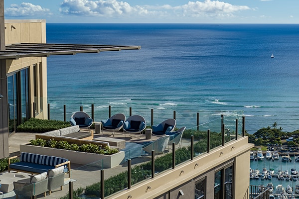 'A'ali'i, designed by Solomon Cordwell Buenz, stands as a 42-story residential tower completed in 2021. Located in the vibrant Kaka'ako neighborhood of Honolulu, this building offers 751 units, blending contemporary design with the convenience of urban living. The building's sleek, modern design features a mix of glass and neutral-toned facade elements, creating a visually appealing structure that complements its surroundings.
