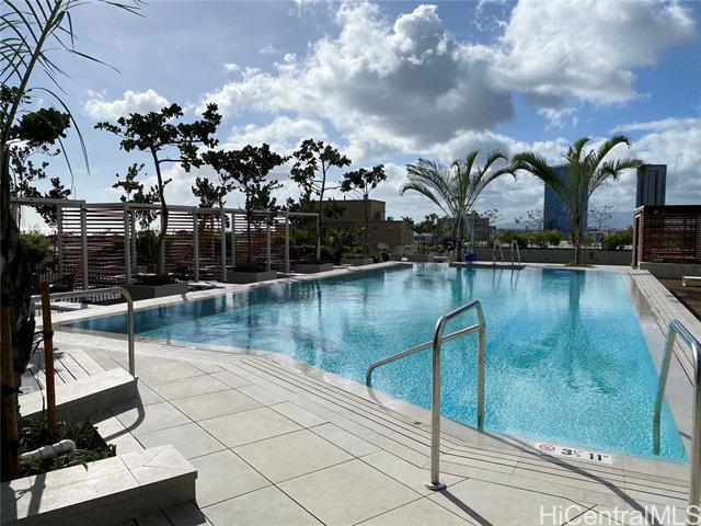 Fully furnished studio at A‘ali‘i, Ward Village. Unit 1717 offers modern island living with a sleek open layout, contemporary finishes, and floor-to-ceiling windows that bring in natural light and city views. Enjoy in-unit washer/dryer, central AC, and a well-appointed kitchen. A‘ali‘i features resort-style amenities including a rooftop sky deck, pool, fitness center, BBQ areas, and 24-hour security. Prime Kaka‘ako location near shops, dining, and beaches—move-in ready.