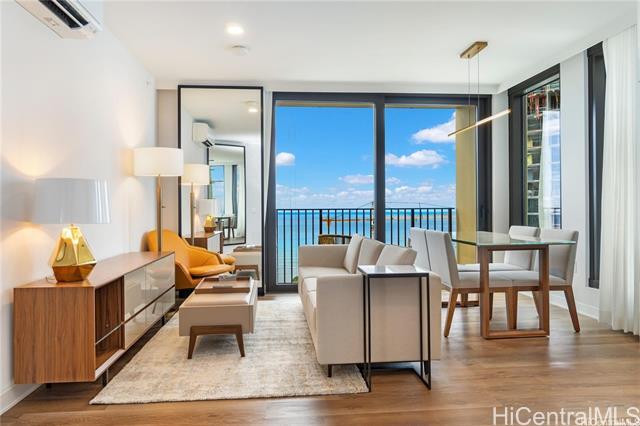 Fully furnished unit even including utensils, towels, linens, pots & pans, plates and cups! Experience this beautiful ocean view unit on a high-floor 1-bedroom, 1-bathroom with 1 parking. located in the heart of Ward Village and right next to Whole Foods. Situated on the 35th floor of the luxury A'ali'i tower, this condo offers sweeping ocean and coastline views through floor-to-ceiling windows and from the private lanai, creating a bright and airy living space. The open-concept layout features a modern kitchen with high-end Bosch appliances, along with split air conditioning, in-unit washer and dryer, and quality finishes throughout. Residents enjoy resort-style amenities including a heated pool and jacuzzi deck, fitness center, BBQ areas, and an expansive sky terrace with panoramic views. Just steps from Whole Foods, restaurants, shops, Ala Moana Beach Park, and Ala Moana Shopping Center, this home offers the perfect blend of luxury, convenience, and vibrant Honolulu lifestyle. 6 month to 1 year lease allowable Tenant Responsibility- Electricity, Internet/Cable, Renter's Insurance No Pets No Smoking No Short term leases