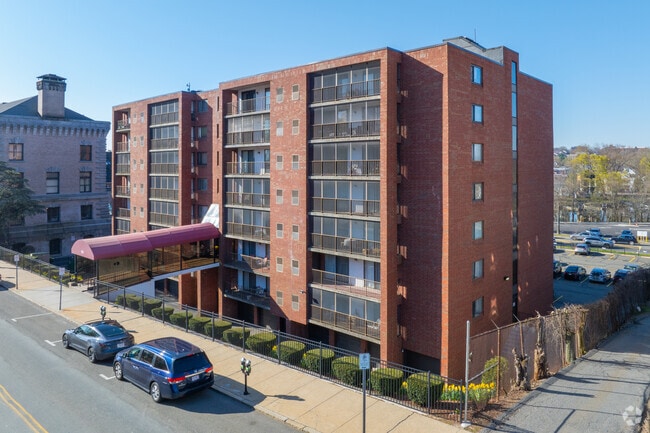 100 High Street, an 8-story condominium building completed in 1984, stands as a fixture in Medford Square. With 57 units, this mid-rise structure offers residents a prime location in the bustling downtown area. The building's simple brick exterior blends seamlessly with the surrounding urban landscape, providing a comfortable home base for those seeking convenience and accessibility in Medford's vibrant center.
