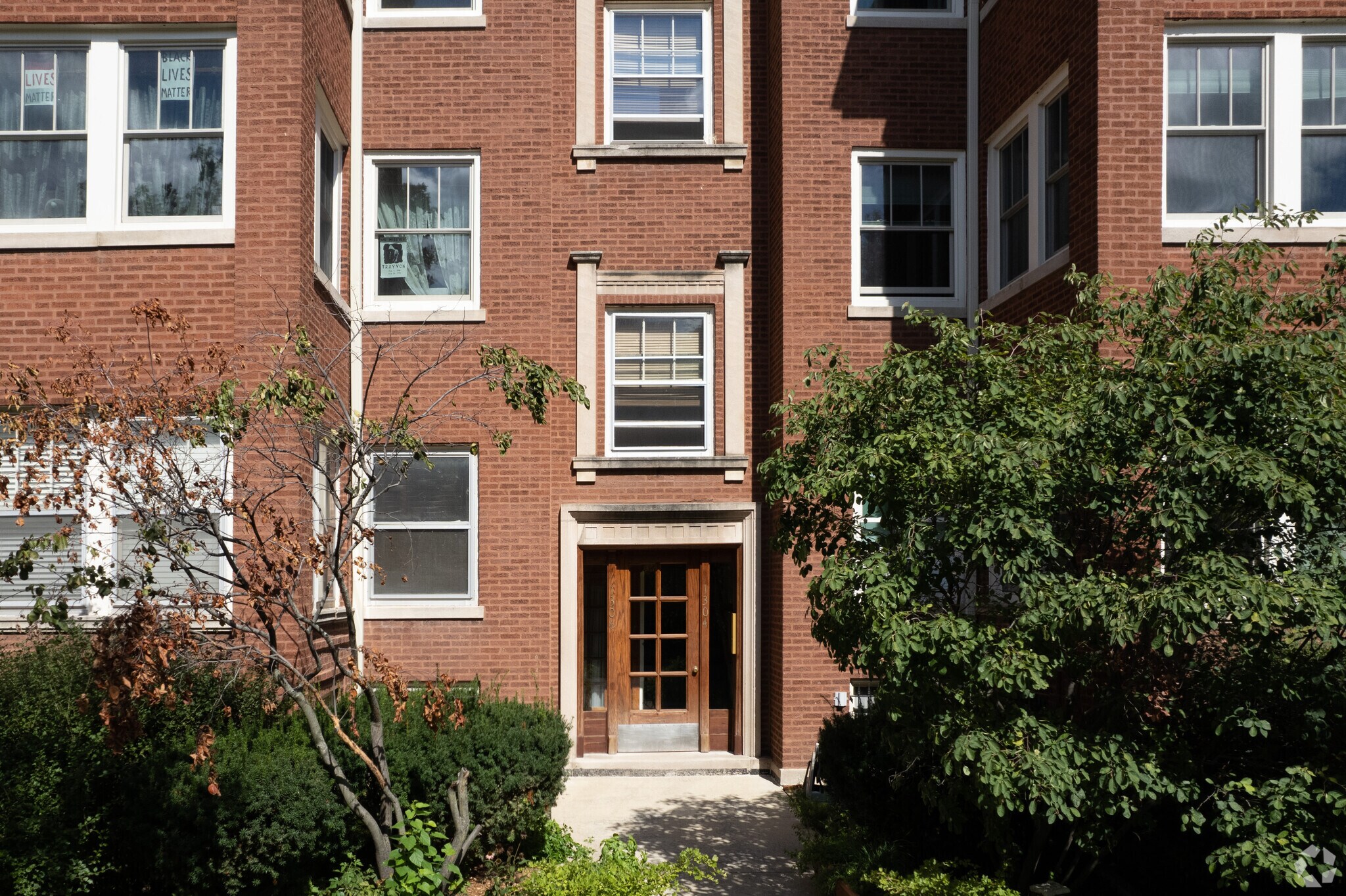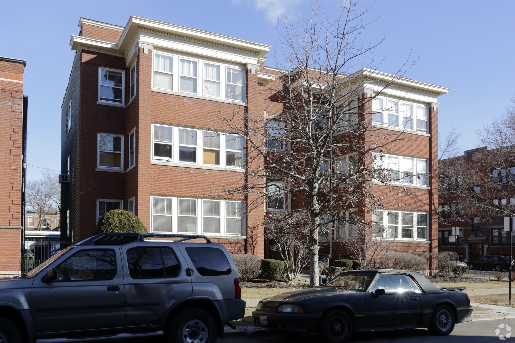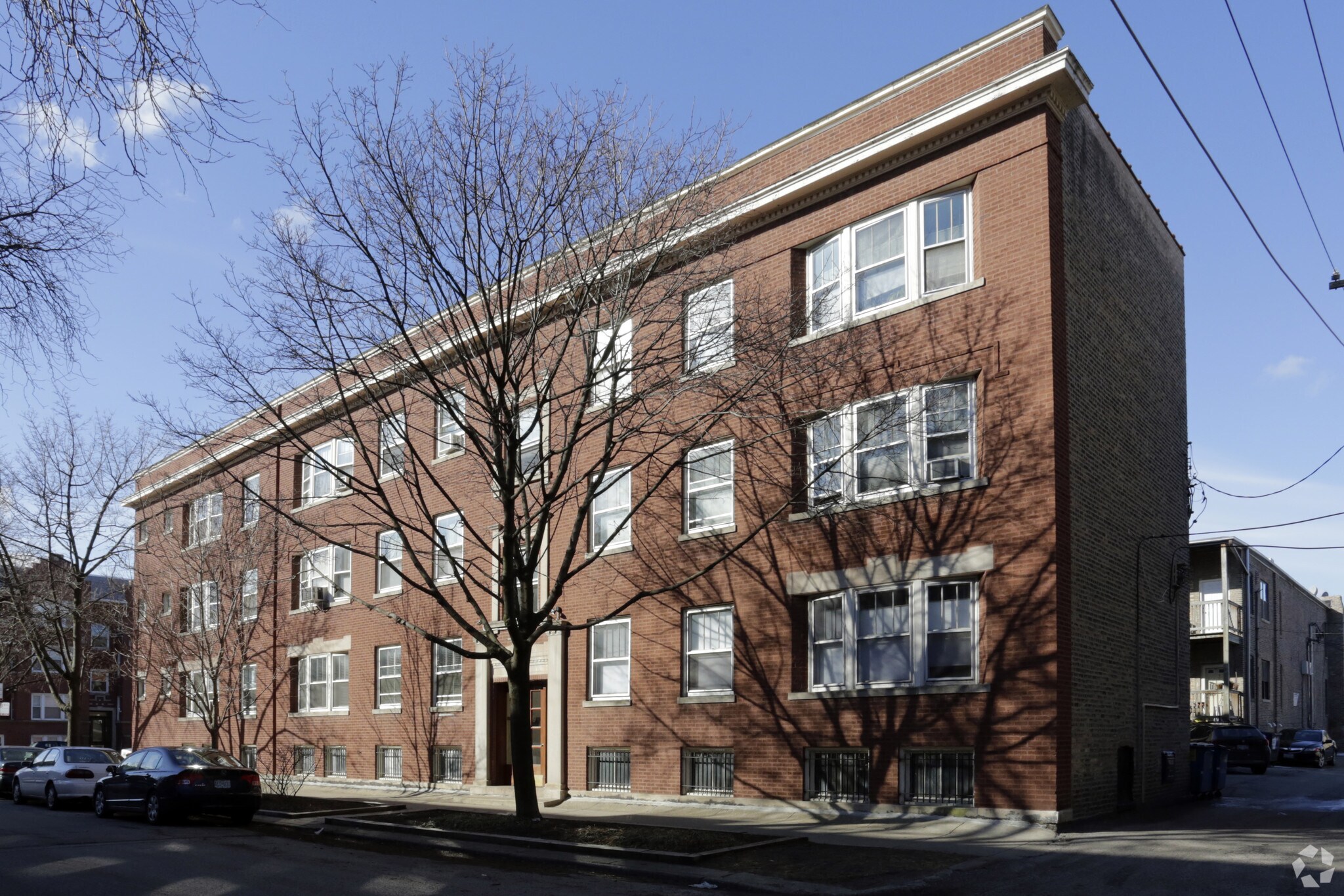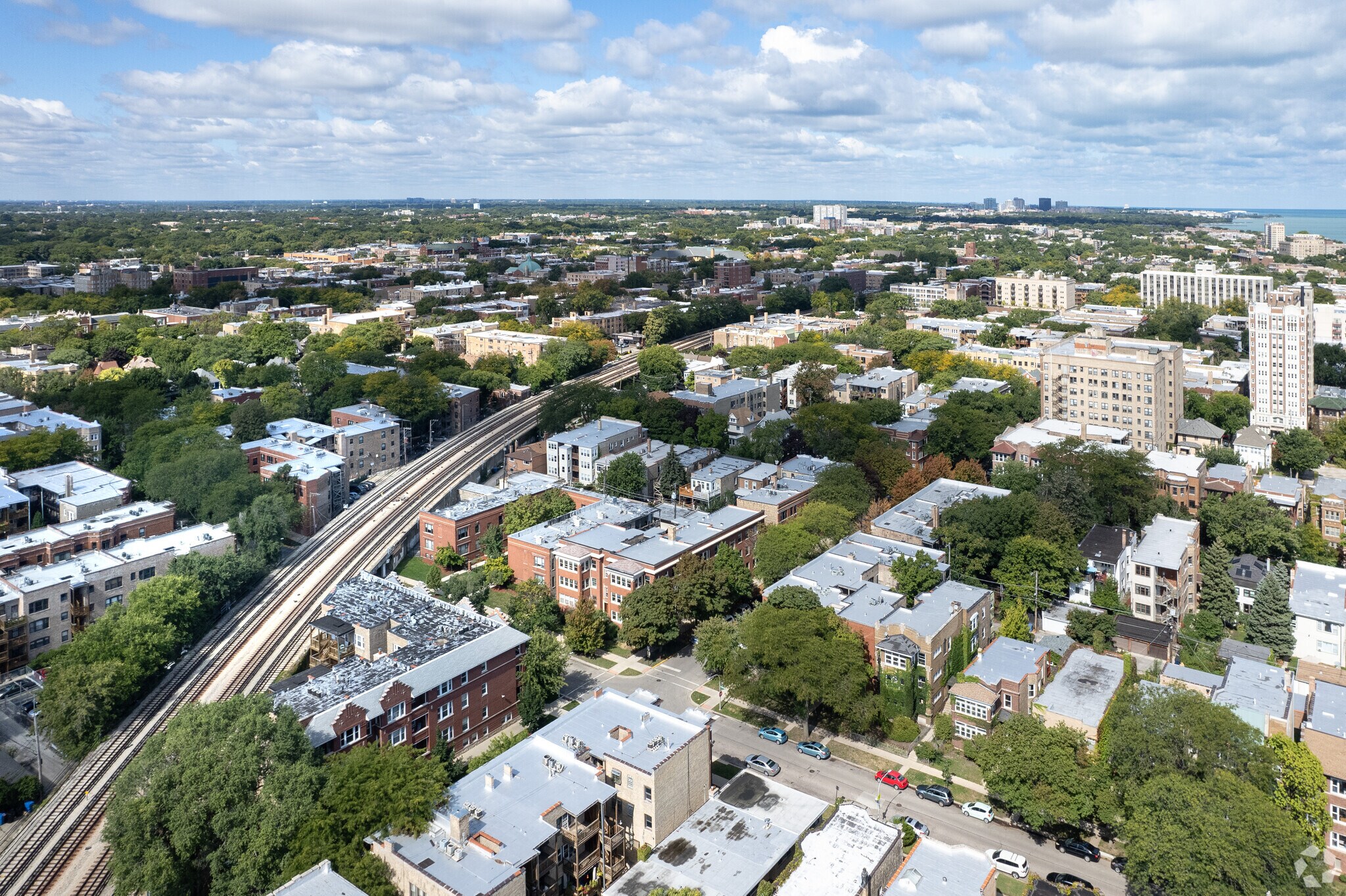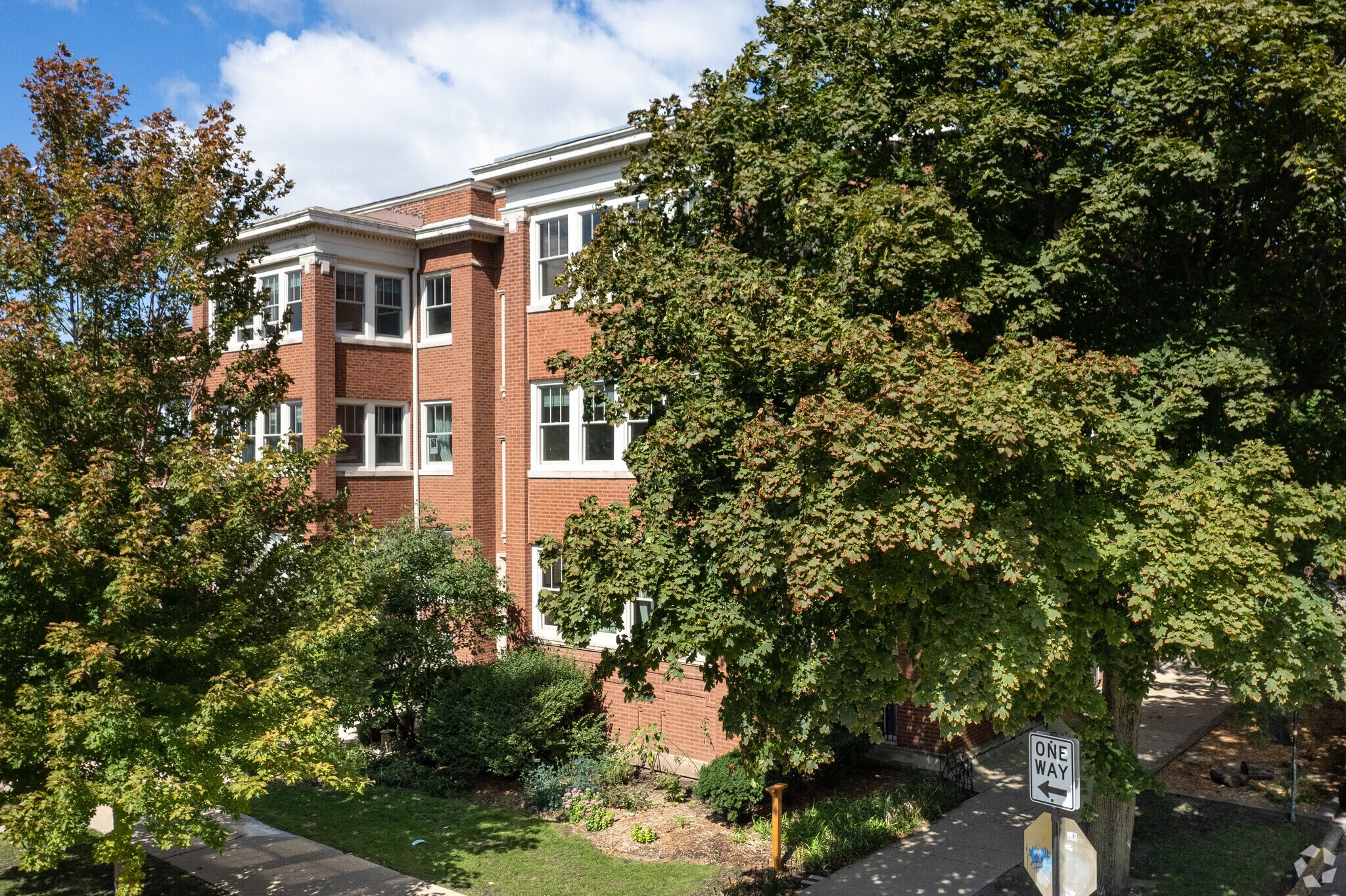 Historic, brick apartment buildings stand in neat rows along tree-lined streets in Rogers Park, considered one of the best neighborhoods in Chicago.