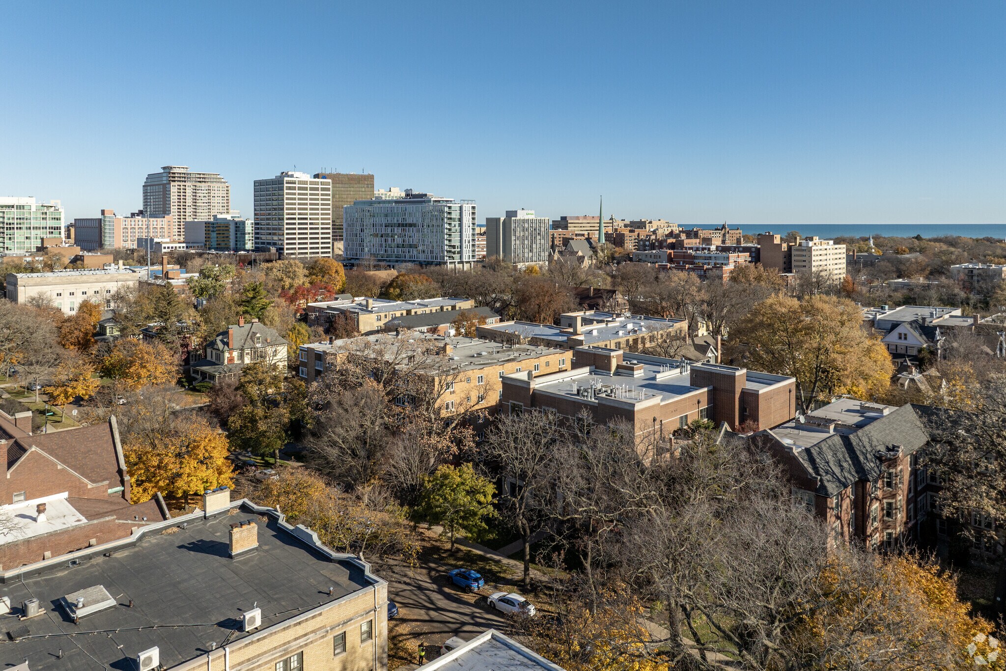Located along Lake Michigan's shoreline just north of Chicago, Evanston combines city convenience with tree-lined neighborhoods. Home to Northwestern University, this city of 78,110 residents offers a rich cultural scene and strong educational heritage. The downtown area near the Davis Street Metra and CTA stations features independent shops and restaurants. Current rental rates show one-bedroom apartments averaging $1,823 per month and two-bedroom units at $2,437, reflecting a year-over-year increase of 2.1% and 1.7% respectively.