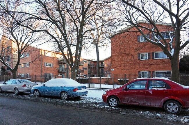 Historic, brick apartment buildings stand in neat rows along tree-lined streets in Rogers Park, considered one of the best neighborhoods in Chicago.