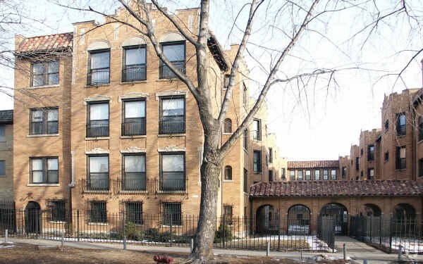 Historic, brick apartment buildings stand in neat rows along tree-lined streets in Rogers Park, considered one of the best neighborhoods in Chicago.