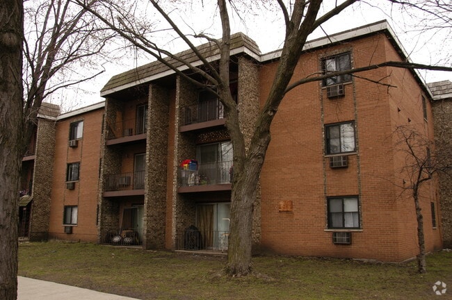 Historic, brick apartment buildings stand in neat rows along tree-lined streets in Rogers Park, considered one of the best neighborhoods in Chicago.