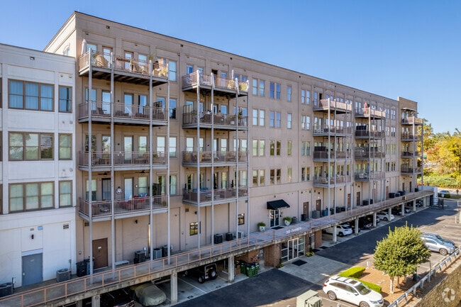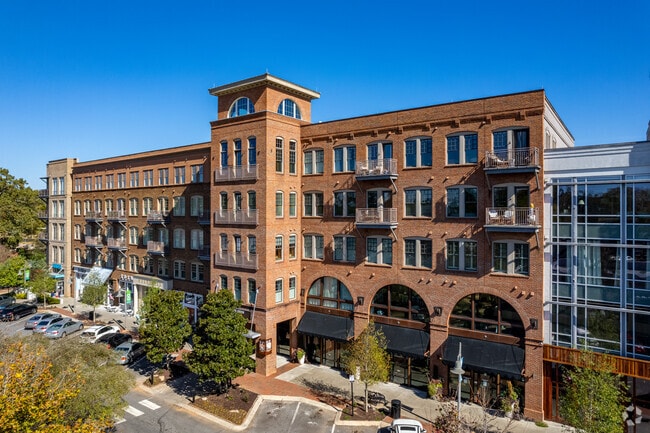 360 Chambers Street stands as a prominent fixture in Downtown Woodstock, offering 198 condominium units across its five stories. Completed in 2005, this residential complex combines contemporary design with the charm of its historic surroundings. The building's mix of brick and stucco facades, featuring arched windows and a combination of recessed and protruding balconies, adds visual interest to the streetscape. Situated in one of metro-Atlanta's most sought-after areas, 360 Chambers Street provides residents with a perfect blend of urban convenience and small-town atmosphere.