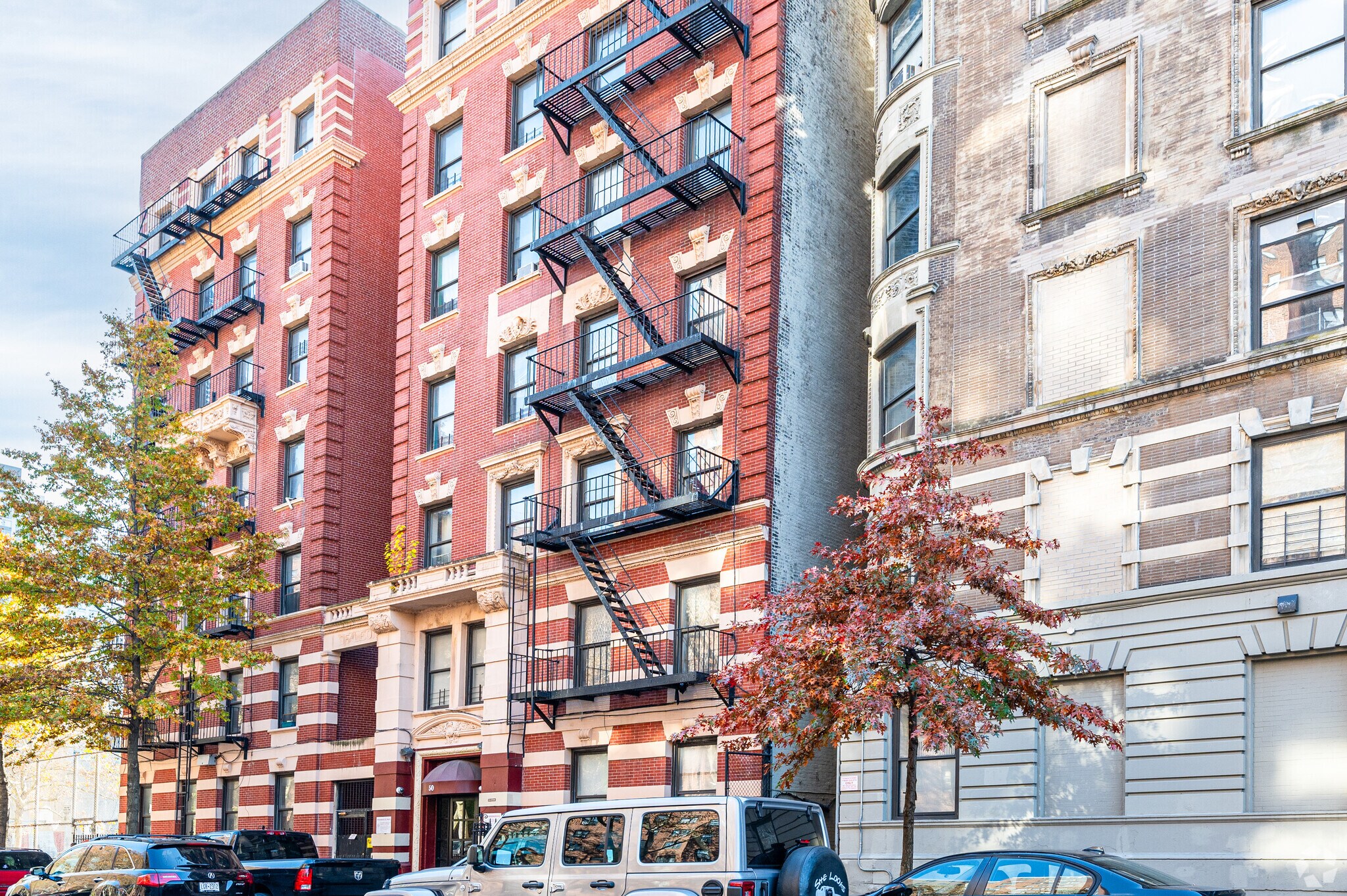 50 W 112th Street, a pre-war cooperative building, stands as a testament to Harlem's rich architectural heritage. Constructed in 1910, this seven-story structure houses 62 units, offering residents a blend of historical charm and modern living. Located just two blocks from Central Park, the building provides a prime location for those seeking to experience the vibrant culture and community of Central Harlem. The red brick facade, adorned with a checkerboard pattern of contrasting light stone, speaks to the building's enduring presence in the neighborhood for over a century.