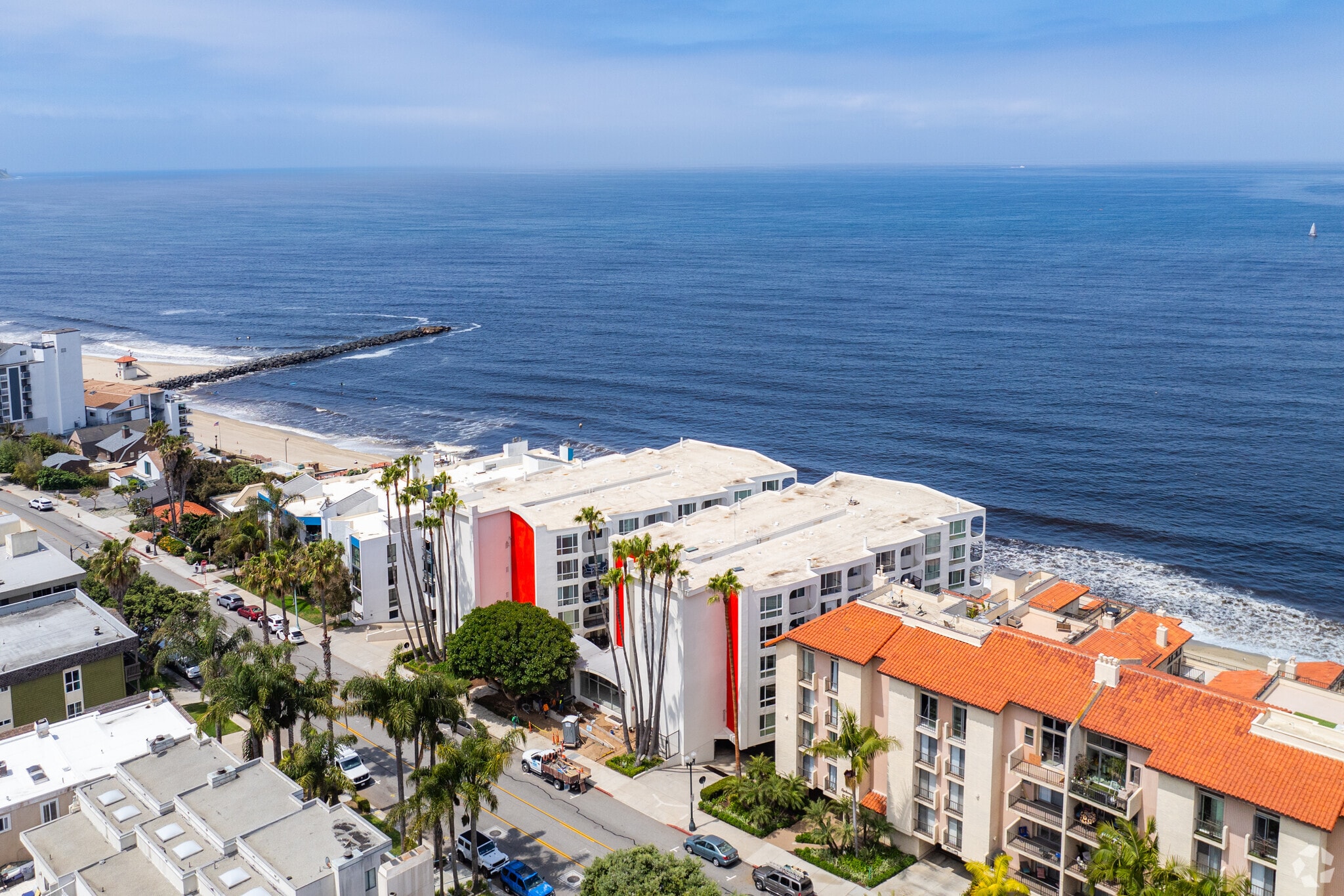 The Surfrider at 565 Esplanade stands as an iconic presence along Redondo Beach's shoreline. Completed in 1971, this 5-story condominium complex houses 64 units, offering residents direct access to the sandy beaches and crashing waves of the Pacific. Designed by visionary South Bay architect Bill Burchfield, The Surfrider holds a unique historical designation with the Los Angeles Conservancy. As the first residential high-rise on the Redondo Beach Esplanade, its curvilinear balcony design ensures ocean views from every unit. The building's facade, adorned with tiles from the former Metlox Pottery headquarters, showcases its mid-century modern roots while providing a timeless coastal aesthetic.
