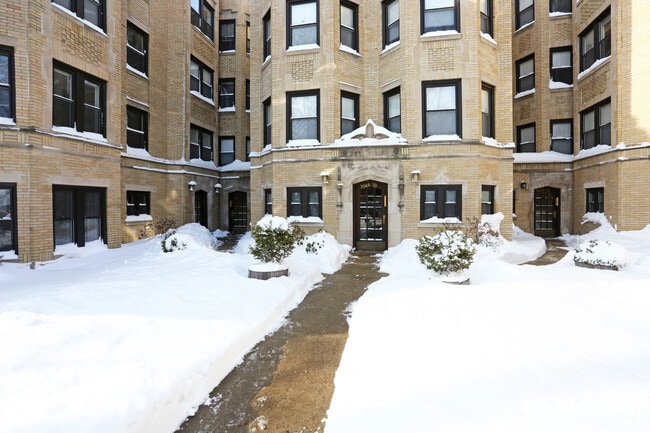 Historic, brick apartment buildings stand in neat rows along tree-lined streets in Rogers Park, considered one of the best neighborhoods in Chicago.