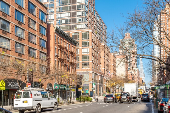 Hell’s Kitchen is defined by upscale new and refurbished residential buildings, though rental rates are still quite competitive for Manhattan. A vibrant collective of restaurants, bars, and art centers will leave you with plenty to do if you live here! Numerous public parks are spread throughout the community, particularly the large De Witt Clinton Park near the waterfront, and Central Park is very close as well.