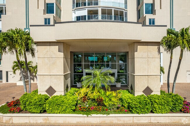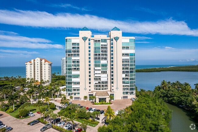 Baypointe At Naples Cay is an 18-story condominium building completed in 1996, offering 92 luxurious units. Located in the serene community of Park Shore, this modern high-rise features a symmetrical facade with prominent vertical lines and a central entrance canopy. The building's consistent use of glass and balconies ensures that residents enjoy breathtaking views of the Gulf of Mexico and Clam Bay.