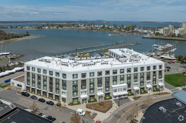 Brio Hingham, completed in 2019, stands as a contemporary addition to the bustling Hingham Shipyard area. This five-story condominium complex houses 77 units, offering residents a blend of coastal charm and urban convenience. Situated in the Crow Point neighborhood, Brio provides expansive views of Hingham Bay, creating an atmosphere of seaside tranquility. The building's design incorporates large windows and neutral tones, allowing natural light to flood the interiors while maintaining a sleek, modern aesthetic. Its location in the heart of the Shipyard development places residents within walking distance of numerous amenities, including shops, restaurants, and transportation options, making it an ideal choice for those seeking a balance between waterfront living and easy access to urban conveniences.
