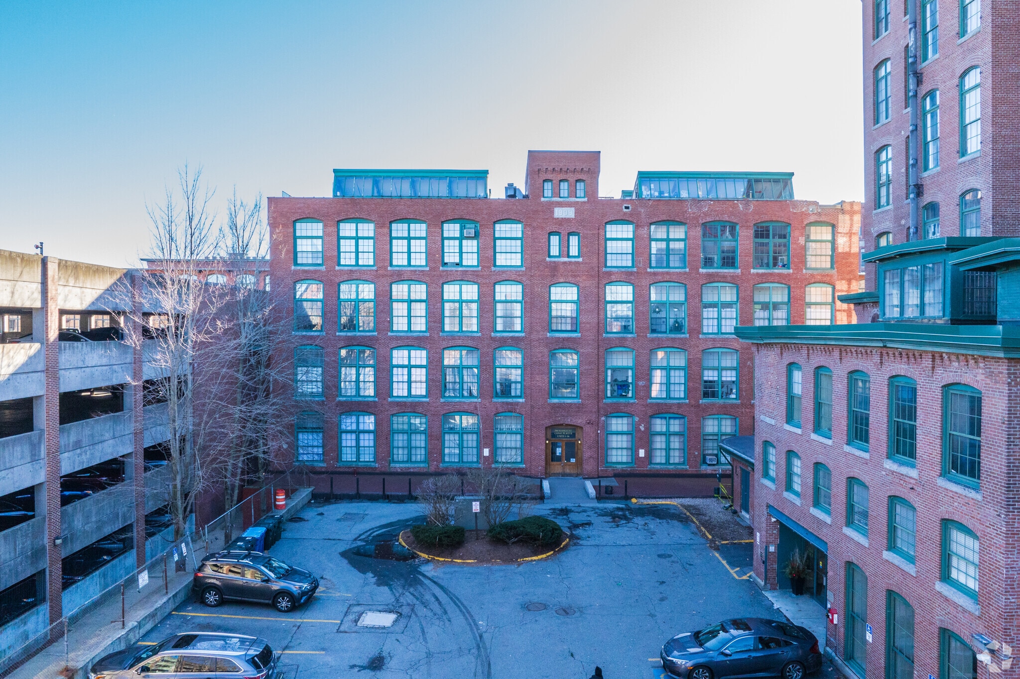 Canal Place, a former textile mill built in 1908, stands as a testament to Lowell's industrial past reimagined for modern living. This 8-story building in downtown Lowell houses 119 condominium units, blending historical character with contemporary comfort. The red brick exterior and large rectangular windows reflect its industrial heritage, while the interior spaces have been thoughtfully renovated to meet the needs of today's residents. Situated along the city's iconic canal system, Canal Place offers a unique living experience that connects residents to Lowell's rich history and vibrant present.
