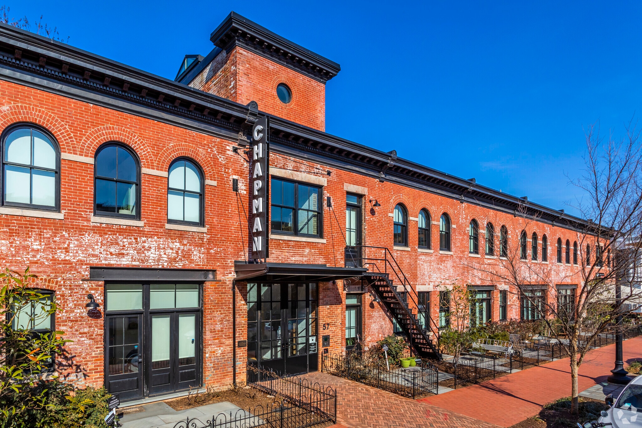 Chapman Stables, a 114-unit condominium complex in Washington D.C.'s Truxton Circle neighborhood, seamlessly blends historic character with contemporary design. Completed in 2018 by Studio 27 Architecture, this three-story building pays homage to its past as a former horse stable and automotive garage while offering modern amenities. The structure, listed on the U.S. National Register of Historic Places, underwent a thoughtful renovation that preserved its rich heritage while introducing luxurious living spaces. With its prime location at the intersection of 1st and N Street NW, Chapman Stables offers residents a unique opportunity to experience urban living in a building steeped in local history.