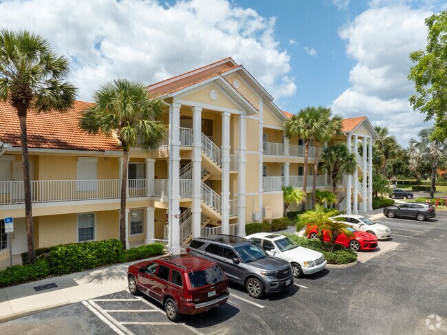 Coral Falls, completed in 2005, is a four-story condominium complex situated within the expansive Lely Resort community in South Naples, Florida. This mid-sized development houses 64 units, offering residents a blend of comfort and convenience in a sought-after location. The building's simple yet functional design includes external staircases and balconies for each unit, topped by a hipped roof with clay tiles, reflecting the area's Mediterranean-inspired architectural influences.