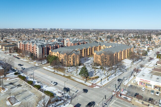 Housing in Harwood Heights skews toward well-maintained apartment communities, with a mix of mid-rise buildings and garden-style units that reflect the area's postwar growth era.