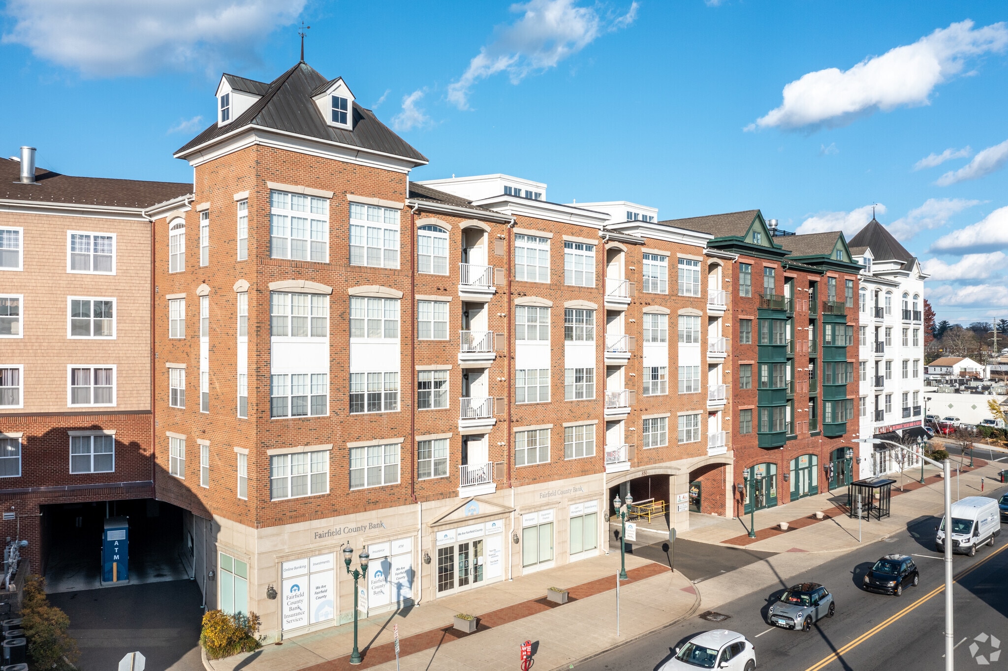 Eastside Commons Condominiums, completed in 2008, is a five-story residential building located in the Glenbrook neighborhood of Stamford. The building comprises 108 units and features a brick facade with a symmetrical design and a central mansard roof element. This modern condominium offers a blend of comfort and accessibility, making it an ideal choice for those seeking a well-connected urban lifestyle.