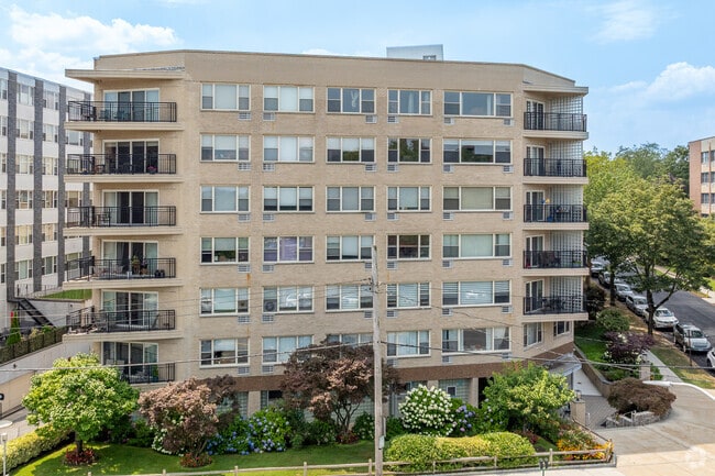 White Plains, located 25 miles north of Midtown Manhattan, combines city conveniences with suburban living. The revitalized downtown features high-rise apartment communities and The Westchester mall, anchored by Nordstrom and Neiman Marcus. The rental market reflects the area's desirability, with current average rents ranging from $2,663 for studios to $4,289 for three-bedroom apartments. A 31-minute express train service to Grand Central Terminal makes White Plains an ideal choice for Manhattan commuters.
