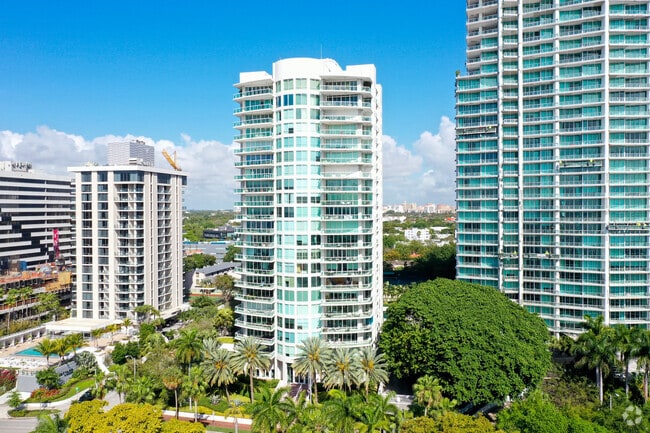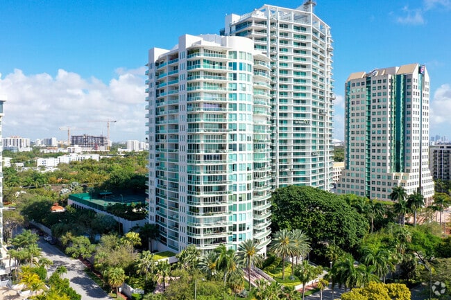 Grove Hill, designed by Bermello Ajamil & Partners, stands as a modern high-rise condominium in the lush neighborhood of Northeast Coconut Grove. Completed in 1996, this 22-story building houses 76 exclusive units. Its distinctive curved facade and glass balconies offer panoramic views, creating a striking presence in the area. The building's central cylindrical core adds a touch of architectural intrigue, making it a notable landmark in this vibrant Miami community.