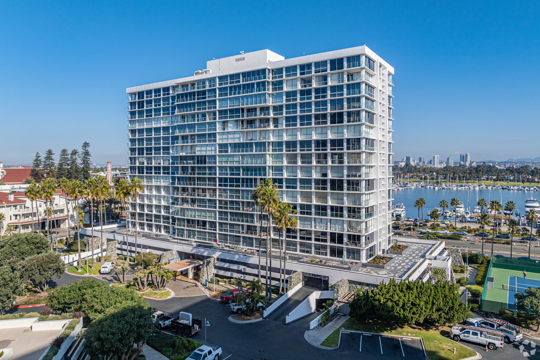 La Playa, a 16-story condominium building constructed in 1975, offers a prime location in the picturesque Coronado neighborhood. With 134 units, this building provides residents with stunning views of the Pacific Ocean, Glorietta Bay, and the San Diego skyline. The building's design maximizes natural light and panoramic vistas, making it a sought-after residence for those looking to experience the best of coastal living.