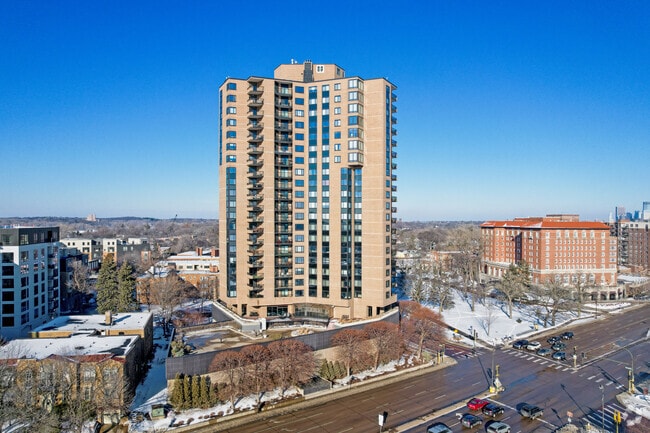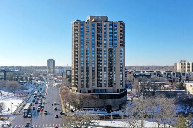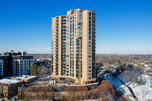 Lake Point Condominiums, a 20-story high-rise completed in 1977, stands as a prominent fixture in the Cedar-Isles-Dean neighborhood of Minneapolis. With 107 units, this condominium offers residents a prime location between the city's renowned Chain of Lakes. The building's curved facade and regularly spaced balconies create a distinctive silhouette against the Minneapolis skyline, while providing residents with panoramic views of the surrounding lakes and urban landscape.