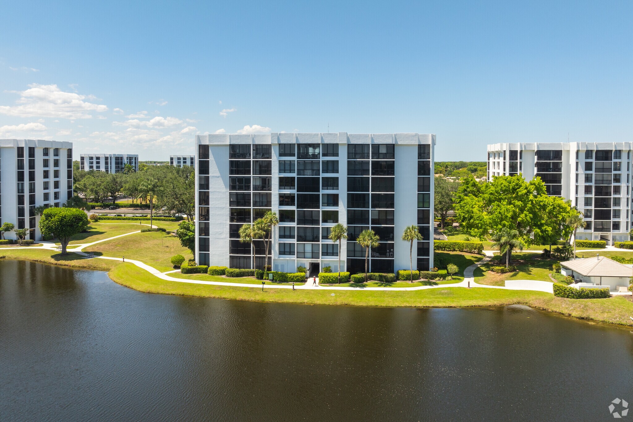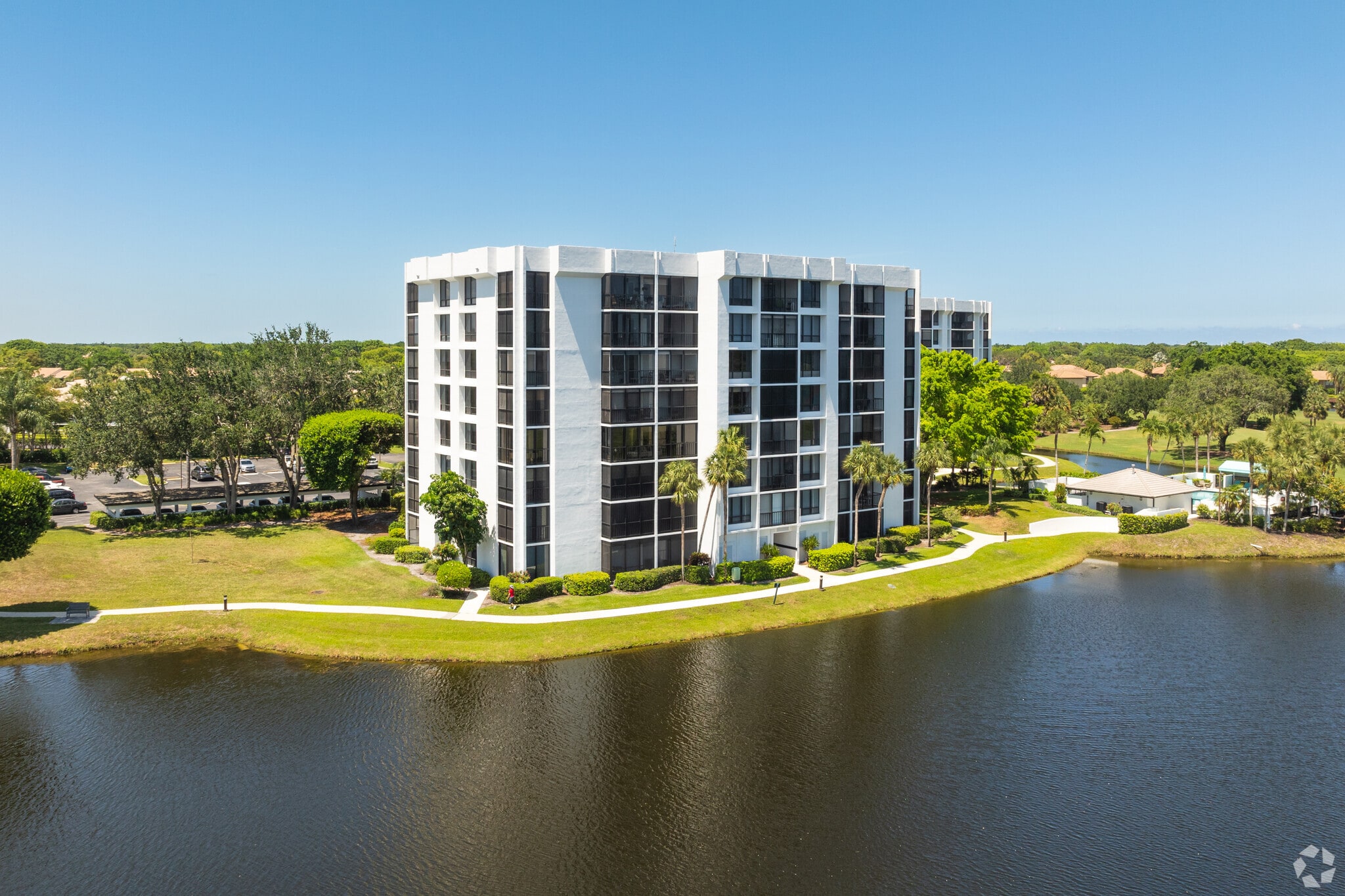 Lakewood Midrise, an eight-story condominium building, was constructed in 1976 and is home to 352 units. Located in the heart of Boca West, this building offers a blend of modern design and community-oriented living. The building's symmetrical facade with evenly spaced windows and balconies provides a clean, contemporary look that fits well within the lush, tropical surroundings of Boca West.