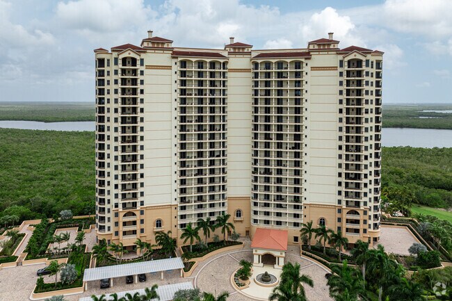 Lesina at Hammock Bay, completed in 2007, stands as a testament to refined coastal living in Naples, Florida. This 20-story high-rise condominium, designed with a symmetrical facade, houses 116 luxurious residences. Situated between Naples and Marco Island, Lesina offers residents a coveted address with panoramic views of the surrounding waterways, Marco Island skyline, and the Gulf of Mexico. The building's elegant design, featuring a central section flanked by two slightly recessed wings, creates a striking silhouette against the Florida sky.