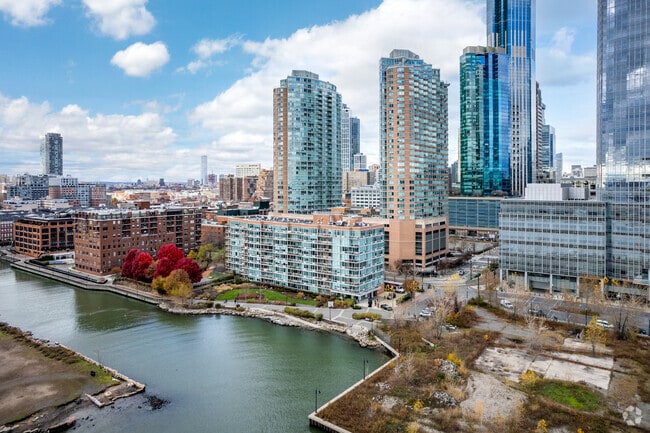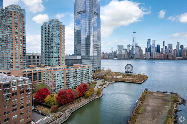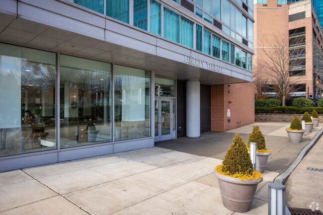 Liberty Terrace, a 9-story condominium completed in 2006, stands as a prominent fixture in Jersey City's Waterfront neighborhood. With 237 units, this boutique building offers residents a prime location with stunning views of the Manhattan skyline and the Hudson River. The glass facade and curved corner design create a modern aesthetic that complements the surrounding urban landscape. Liberty Terrace caters to those seeking a blend of luxury and convenience, providing easy access to both the tranquility of waterfront living and the vibrancy of city life.