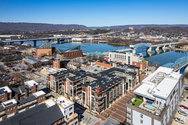 New apartment complexes and small, mid-century rentals call you to the Arts District of Chattanooga, also known as Bluff View. This relaxing neighborhood nestled next to downtown Chattanooga combines historic buildings with charming restaurants and coffeehouses, public gardens and art, and beautiful views of the Tennessee River wrapping around the bluffs.