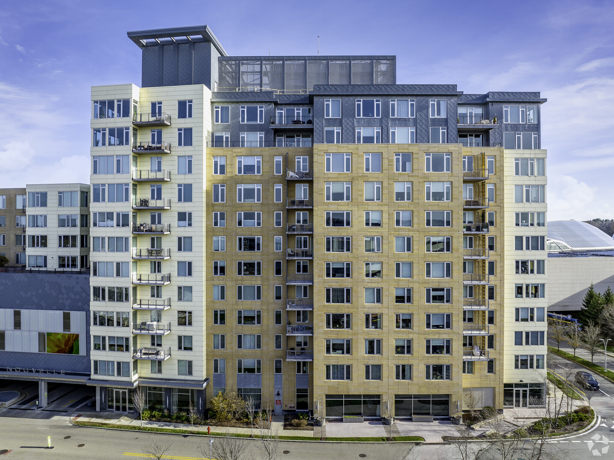 Nouvelle at Natick stands as a prominent fixture in Natick's Golden Triangle, offering a blend of luxury and convenience. Completed in 2007, this 13-story condominium complex houses 220 units, providing residents with a sophisticated urban living experience. The building's contemporary design seamlessly integrates with its surroundings, while its prime location adjacent to the Natick Mall puts a world of shopping and dining options at residents' fingertips. With its full-service amenities and direct access to retail spaces, Nouvelle at Natick embodies the concept of mixed-use development, catering to those seeking a dynamic lifestyle in MetroWest Boston.