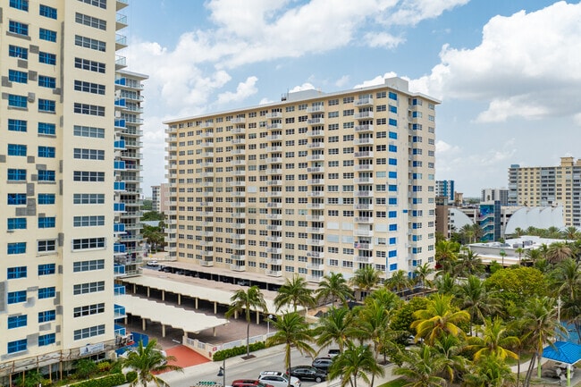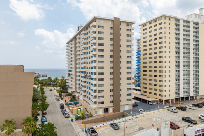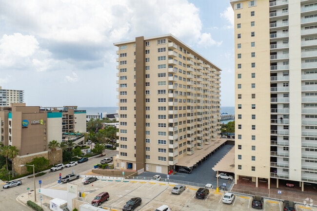 Ocean Monarch, a 16-story condominium complex completed in 1966, stands as a prominent fixture along the bustling oceanfront of Pompano Beach. With 164 units, this full-service residential building offers a blend of coastal living and urban convenience. The structure's simple, functional design features a uniform grid of balconies and windows, providing residents with expansive views of the Atlantic Ocean and the surrounding area. Situated in a prime location next to the Pompano Beach Fishing Pier, Ocean Monarch places residents at the center of the city's vibrant beachside community, with easy access to an array of dining, shopping, and recreational options.