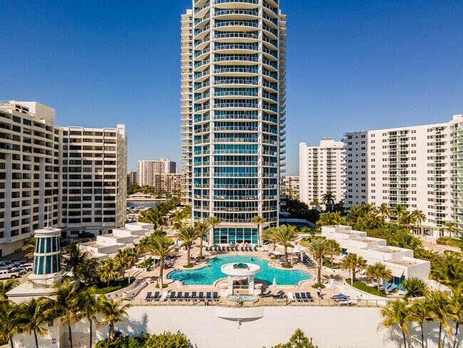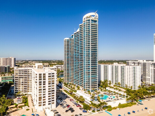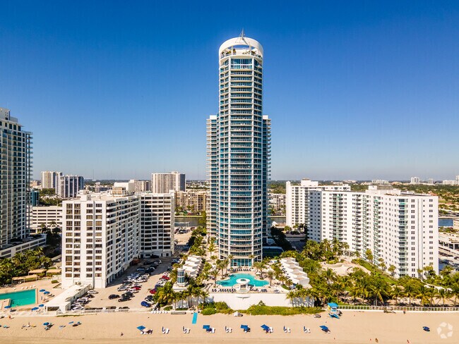 Ocean Palms, a striking 39-story condominium tower, stands as a prominent fixture on Hollywood Beach's skyline. Completed in 2006 by renowned Fullerton Diaz Architects Inc., this modern high-rise boasts 250 units with floor-to-ceiling windows that capture breathtaking views of the Atlantic Ocean and Intracoastal Waterway. The building's curved facade and distinctive spire add a touch of architectural elegance to the coastline, while its prime location offers residents easy access to the vibrant Hollywood Beach Broadwalk and numerous local attractions.