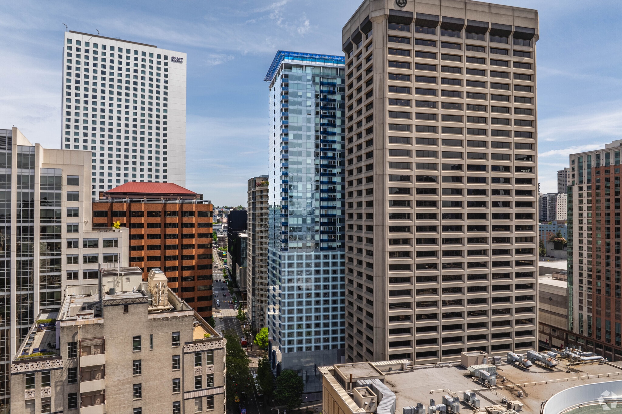 You won't find single-family homes in Denny Triangle -- this ultra-urban, hip neighborhood consists of apartment complexes and condos, many in high-rise buildings. This neighborhood provides several other neighborhoods within walking distance, including Downtown Seattle, Capitol Hill, Pike Place Market, Belltown, and South Lake Union.