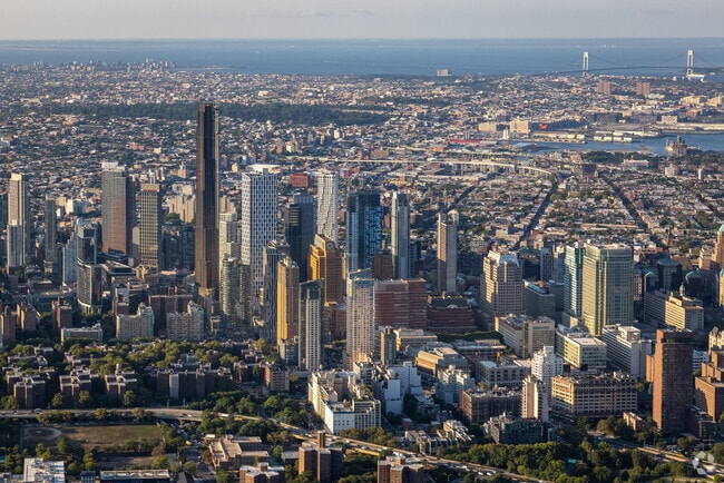 The Oro is in prime Downtown Brooklyn, which means lots of convenience and urban activity. Grocery shopping options, including Trader Joe’s, upscale NYC Fresh Market and Whole Foods, are close by. The City Point complex, with an Alamo Drafthouse Cinema, Target, McNally Jackson and DeKalb Market Hall, is less than three blocks away. Fort Greene Park is a short walk west, as are the Brooklyn Academy of Music and an Apple store. NYU’s Tandon School of Engineering is a few blocks away.