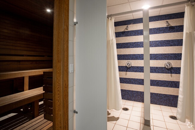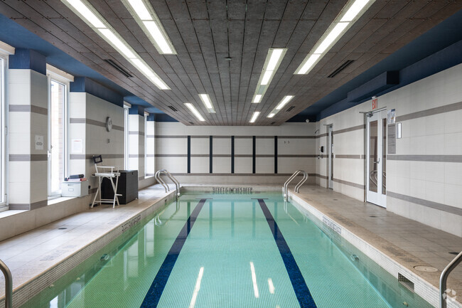Amenities include a two-story gym, with cardio equipment on one floor and weights on the other, as well as a basketball half-court. “You actually see people using it,” says Moondoc. Additional fitness spaces include a lap pool and a sauna; the building has a billiard room and a screening room. Staff includes a resident manager, super and door attendants on duty at all times. A wine store, Japanese restaurant and Peruvian restaurant occupy the ground floor, and a parking garage is in the building.