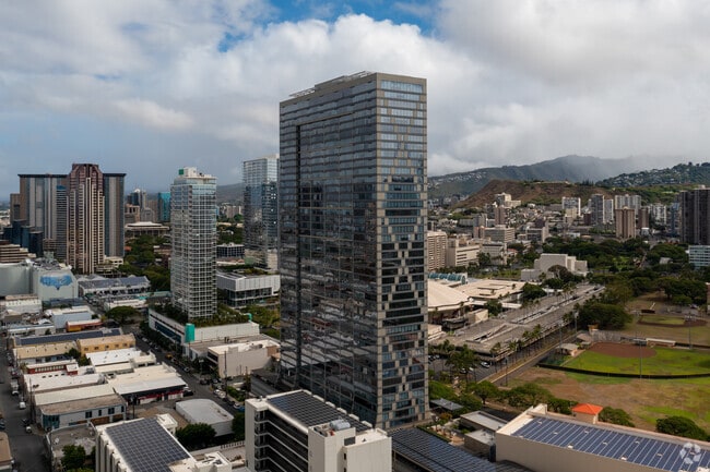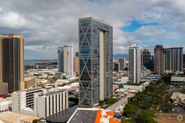 Pacifica Honolulu stands as a prominent fixture in the vibrant Kaka'ako neighborhood, offering a blend of contemporary living and urban convenience. Completed in 2011, this 46-story high-rise, designed by Archinoetics LLC, houses 492 luxury condominiums. The sleek glass facade reflects the modern aesthetic of the surrounding area, while its prime location puts residents at the center of Honolulu's evolving cityscape. With its impressive height and array of amenities, Pacifica Honolulu embodies the essence of sophisticated island living, providing residents with a coveted address in one of Honolulu's most dynamic districts.