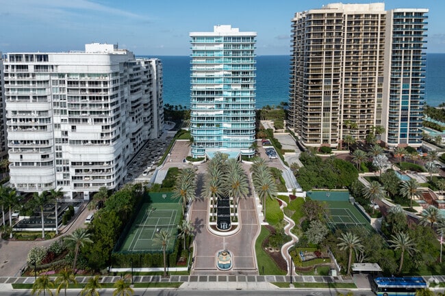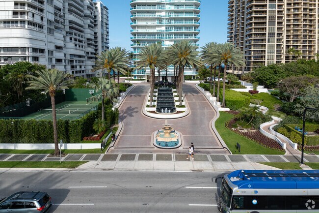 The Palace at Bal Harbour stands as a prominent fixture along the pristine coastline of this exclusive Miami-area community. Completed in 1994, this 21-story modern high-rise offers 104 luxurious condominium units, each designed to maximize the breathtaking views of the Atlantic Ocean and Biscayne Bay. The building's curved facade and extensive use of glass create a sleek, contemporary silhouette that has become synonymous with Bal Harbour's upscale aesthetic. Residents of The Palace enjoy a perfect blend of privacy and accessibility, with world-class shopping and dining just steps away at the renowned Bal Harbour Shops.