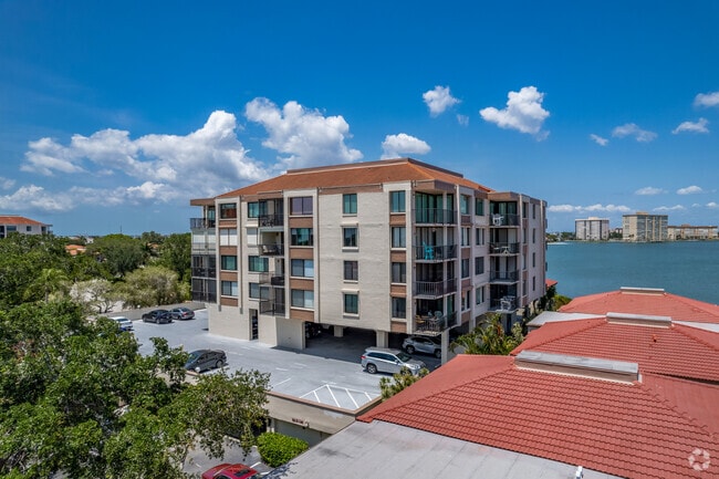 Palma del Mar Building E & F is a six-story condominium complex located in the picturesque Isla Del Sol neighborhood. Completed in 1980, this building houses 128 units and offers a serene waterfront lifestyle. The stucco exterior features a mix of recessed and protruding balconies, providing residents with a variety of views and outdoor spaces. The building's open parking area beneath the structure adds convenience for residents.