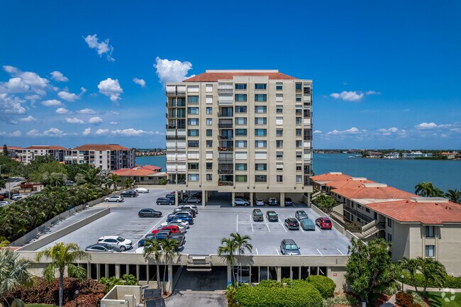 Palma del Mar Building G is a 12-story condominium located on the picturesque Isla Del Sol. Completed in 1981, this building houses 121 units, offering a blend of serene island living with modern conveniences. Situated on a raised platform with an underlying parking area, it provides residents with a unique vantage point to enjoy the surrounding beauty of the Gulf and Tampa Bay.