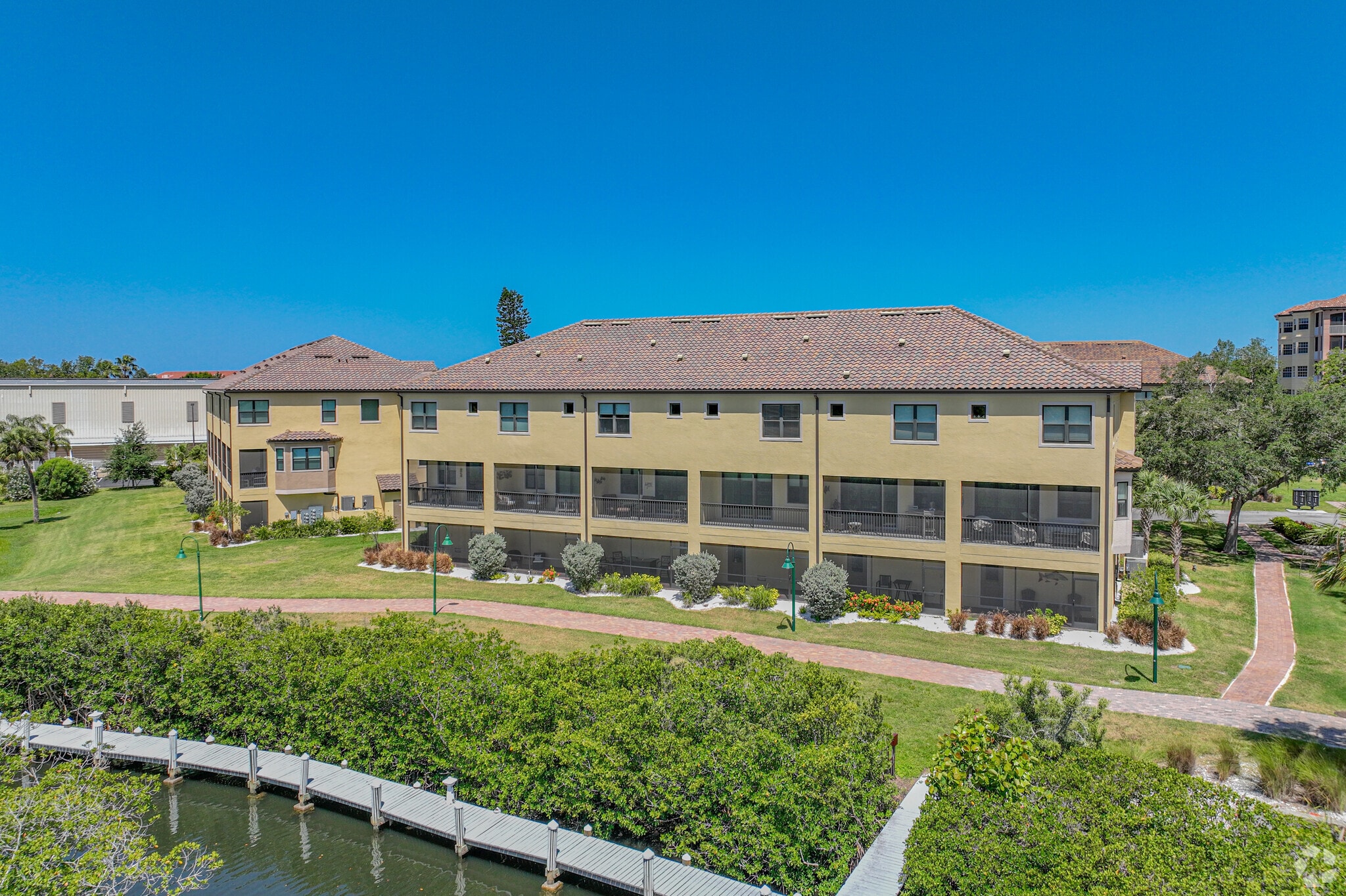 Phillippi Landings, completed in 2006 by Quincy Johnson Architects, offers a serene waterfront lifestyle along the shores of Phillippi Creek in Sarasota, Florida. This gated community comprises 103 units spread across 8 stories, providing residents with picturesque views of the surrounding natural beauty. The modern condominium complex is situated on 10 acres of lush tropical landscape, featuring a 1,200-foot natural waterfront with a private lighted promenade. Phillippi Landings combines the tranquility of waterside living with the convenience of being just two miles from downtown Sarasota and minutes away from the world-famous Siesta Key beach.