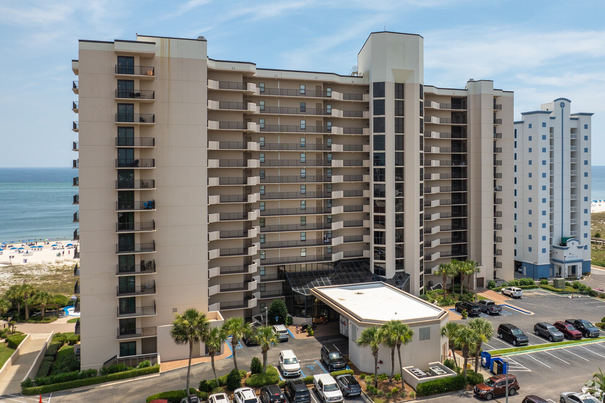 Phoenix East Condominiums, completed in 1995, stands as a prominent 14-story beachfront residence in Orange Beach, Alabama. This sought-after complex houses 156 units, offering residents direct access to the pristine white sands and turquoise waters of the Gulf of Mexico. Designed to maximize views of both the Gulf and Perdido Pass, Phoenix East provides a perfect blend of coastal living and modern convenience. The building's location near the pass allows residents to enjoy the spectacle of boats coming and going, adding to the dynamic coastal atmosphere.