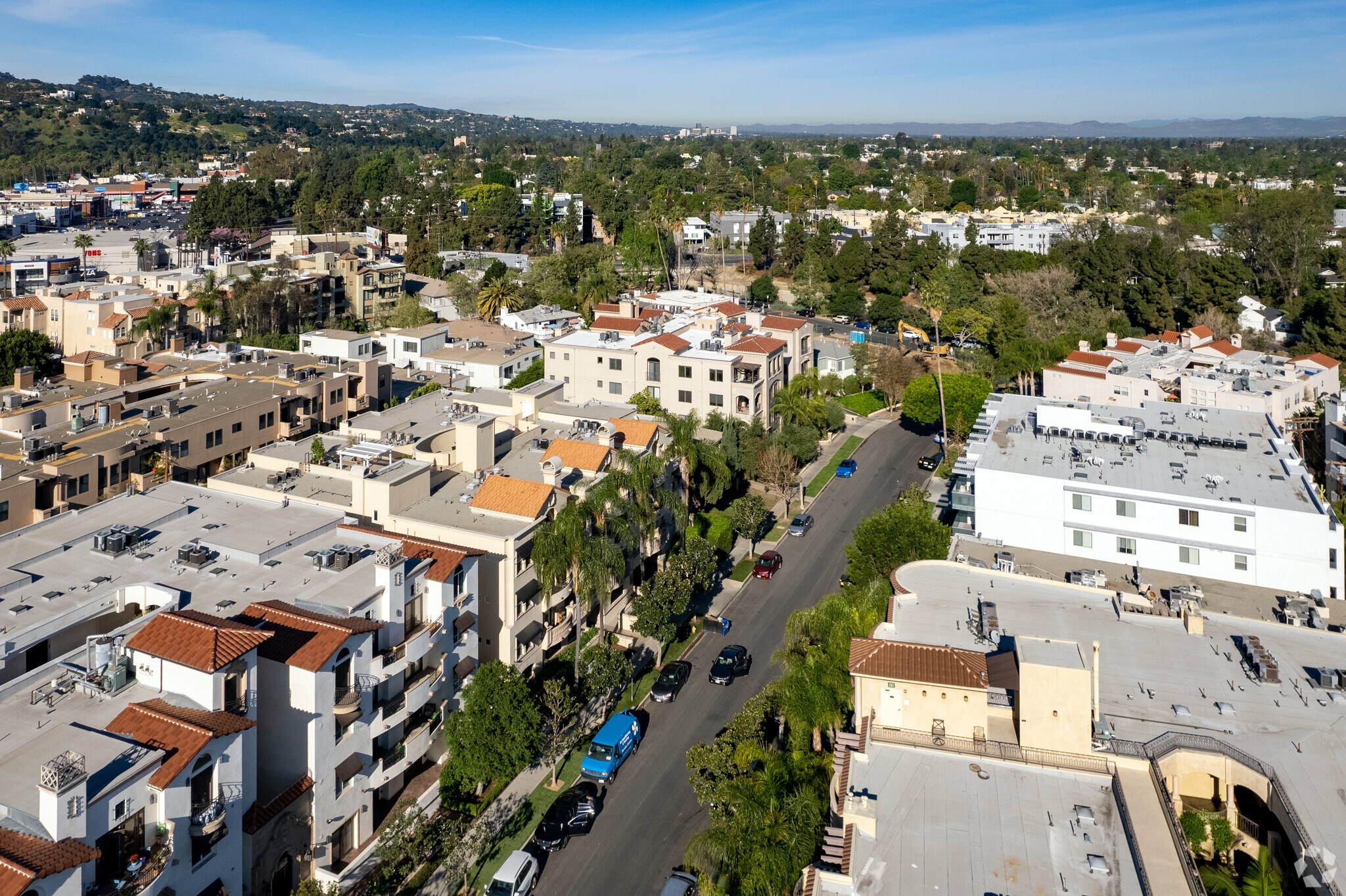 Welcome to Studio City, a Los Angeles neighborhood where entertainment history meets laid-back California living. Named after the historic Mack Sennett studio lot (now Radford Studio Center), this San Fernando Valley community combines residential charm with metropolitan amenities. Ventura Boulevard, the neighborhood's main thoroughfare, features boutiques, restaurants, and cafes. Housing options include modern apartments, with one-bedroom units averaging $2,274, studio apartments at $2,095, and three-bedroom units at $3,798. Many hillside residences offer views of the Santa Monica Mountains.