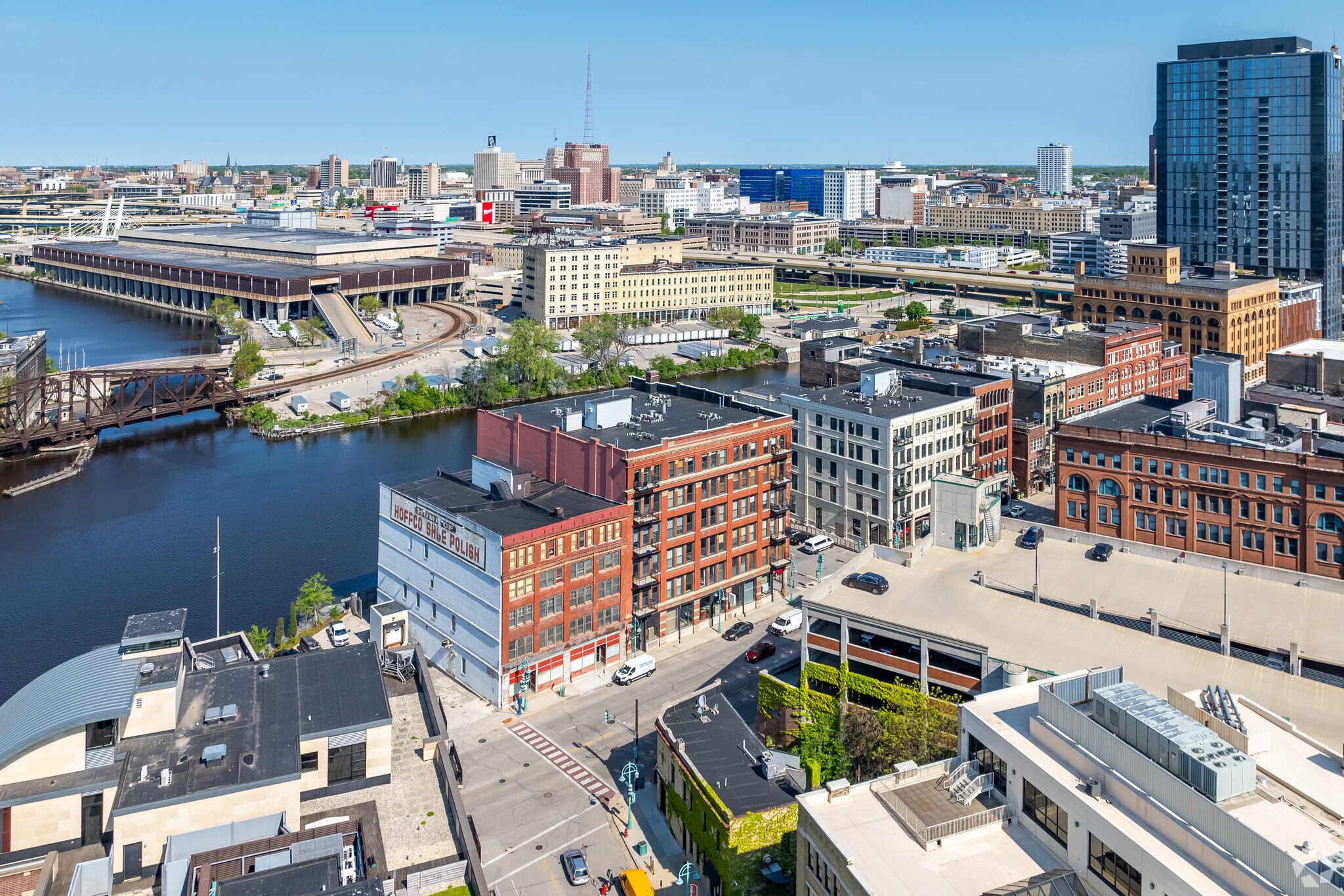 Located just south of downtown, the Historic Third Ward is on a short peninsula wedged between the convergence of the Milwaukee and Kinnickinnick rivers into Lake Michigan and is adjacent to Milwaukee's famous Summerfest grounds.