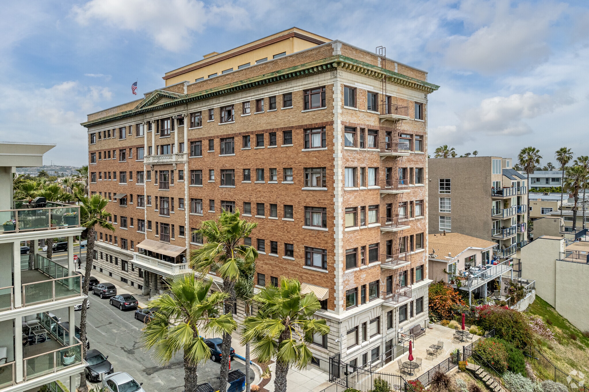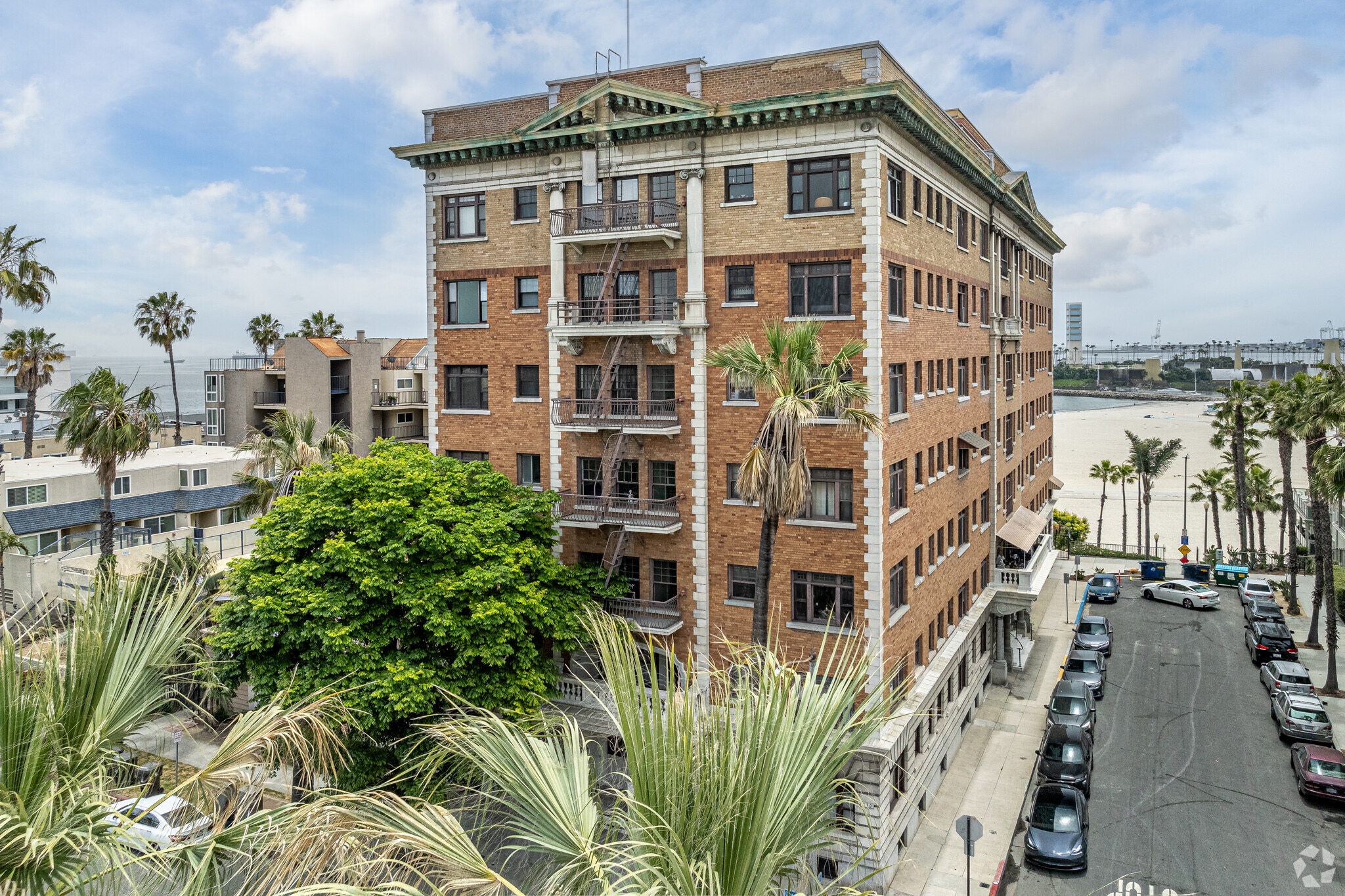 The Saint Regis Apartments, a Renaissance Revival gem completed in 1926, stands as a testament to Long Beach's rich architectural heritage. This 7-story condominium building houses 77 units, offering residents a unique blend of historic charm and modern coastal living. Situated directly on Alamitos Beach, the Saint Regis provides an unparalleled opportunity to experience beachfront living in one of Long Beach's most vibrant neighborhoods. The building's location puts residents just steps away from the sand, with easy access to the bustling downtown area and its myriad of attractions.