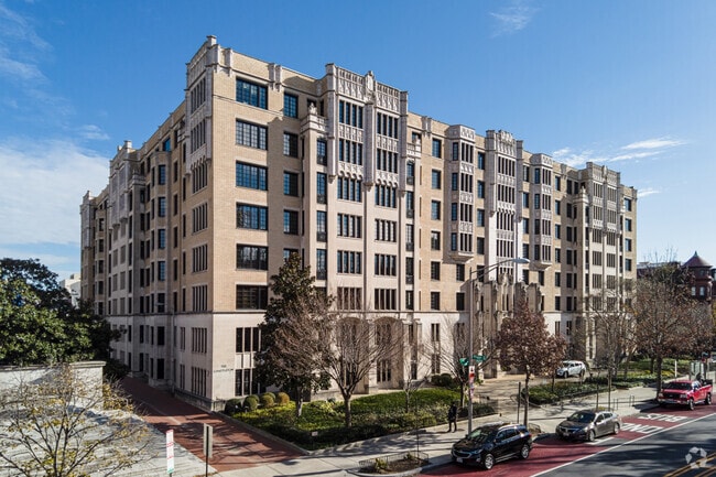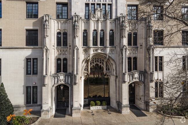 The Chastleton, a striking example of Gothic Revival architecture, stands proudly in the heart of Dupont Circle. Completed in 1920, this eight-story building houses 300 units, each offering a unique blend of historic charm and modern convenience. The building's intricate stone detailing and tall, narrow windows create a vertical emphasis that is both elegant and timeless. Located in one of Washington, D.C.'s most sought-after neighborhoods, The Chastleton offers residents a vibrant urban lifestyle with a touch of historical grandeur.