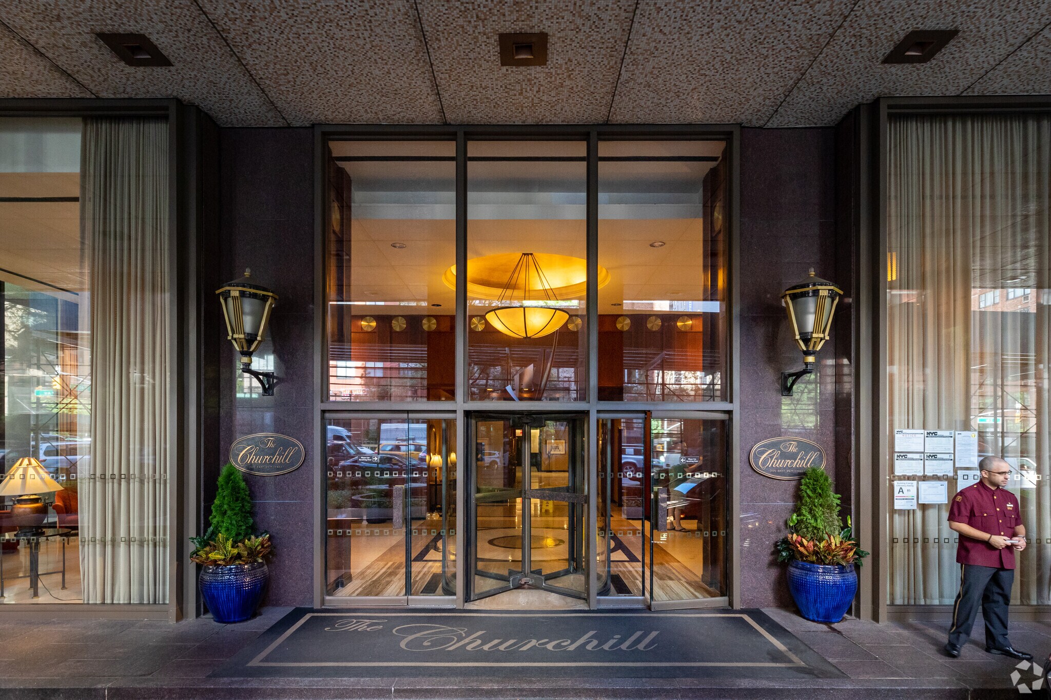 The Churchill represents a type of building developers no longer create in New York City. Unlike contemporary condos with flat designs made either of luxury limestone or glass and steel, this 1960s co-op has a fountained driveway, white-glove concierge services and a portrait in the lobby of the namesake figure, Winston Churchill. “One of the main draws is that the building is impeccably maintained,” says Geri Epstein, a real estate agent who has sold in the building for years. “The board is very proactive, and there are building staff who have worked there for 20 years. It’s very hotel-like living.” The rooftop pool is an enticing modern touch, and because owners can start subletting their unit as soon as they purchase, the building appeals to residents and investors. Walking past the cursive gold signage and into the double-height lobby, owners can enjoy a quiet and refined space with an old-school charm, not unlike the Tudor City towers down the streets.