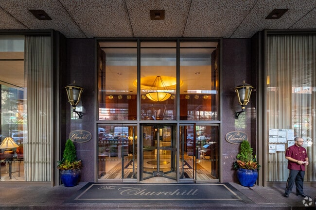 The rooftop pool and shaded lounge areas, which include an outdoor gas fireplace, are The Churchill’s crowning amenities. Plus, they’re the best spot to take in the skyline and river views. A fitness center and saunas round out the shared recreational spaces, and the public underground parking garage adds a practical convenience. In addition to helping residents coordinate their housekeeping and dry cleaning, the front desk staff also offers valet parking.