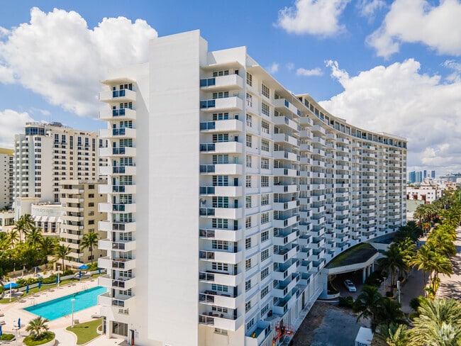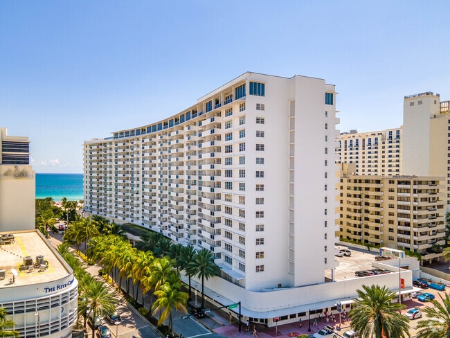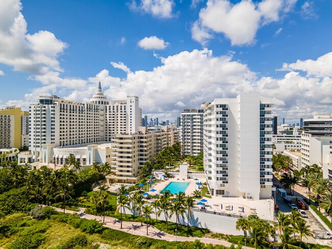 The Decoplage, a 16-story condominium completed in 1965, is a prominent fixture in Miami Beach's vibrant landscape. With 667 units, it offers a diverse range of living spaces right where Lincoln Road meets the ocean. This high-rise is known for its prime location, providing residents with direct access to the lively atmosphere of South Beach. The building's modern design, characterized by a grid-like pattern of balconies and windows, complements its beachfront setting without overshadowing the stunning ocean views.