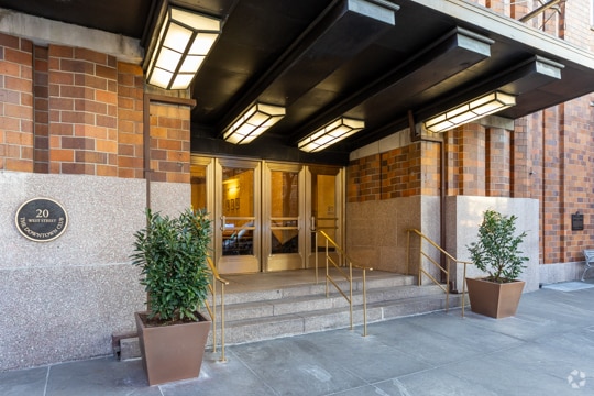 In the late 1920s, Starrett & van Vleck, the firm behind the Saks Fifth Avenue building, elected to build 20 West Street in the Art Deco style that was popular at the time. Save the asymmetrical setbacks at the tower’s crown, it’s the entrance that best encapsulates the style — more specifically, the metal marquee and, directly above, the chevron glass panels. The high-rise officially opened as the Downtown Athletic Club (DAC) in 1930. On the third floor, DAC members could dine at a private restaurant, while the fourth through the 12th floors were filled with athletic facilities such as an Olympic-size swimming pool and racquetball courts. The next three levels were reserved for banquet rooms, and the club’s exclusive hotel began on the 22nd floor.